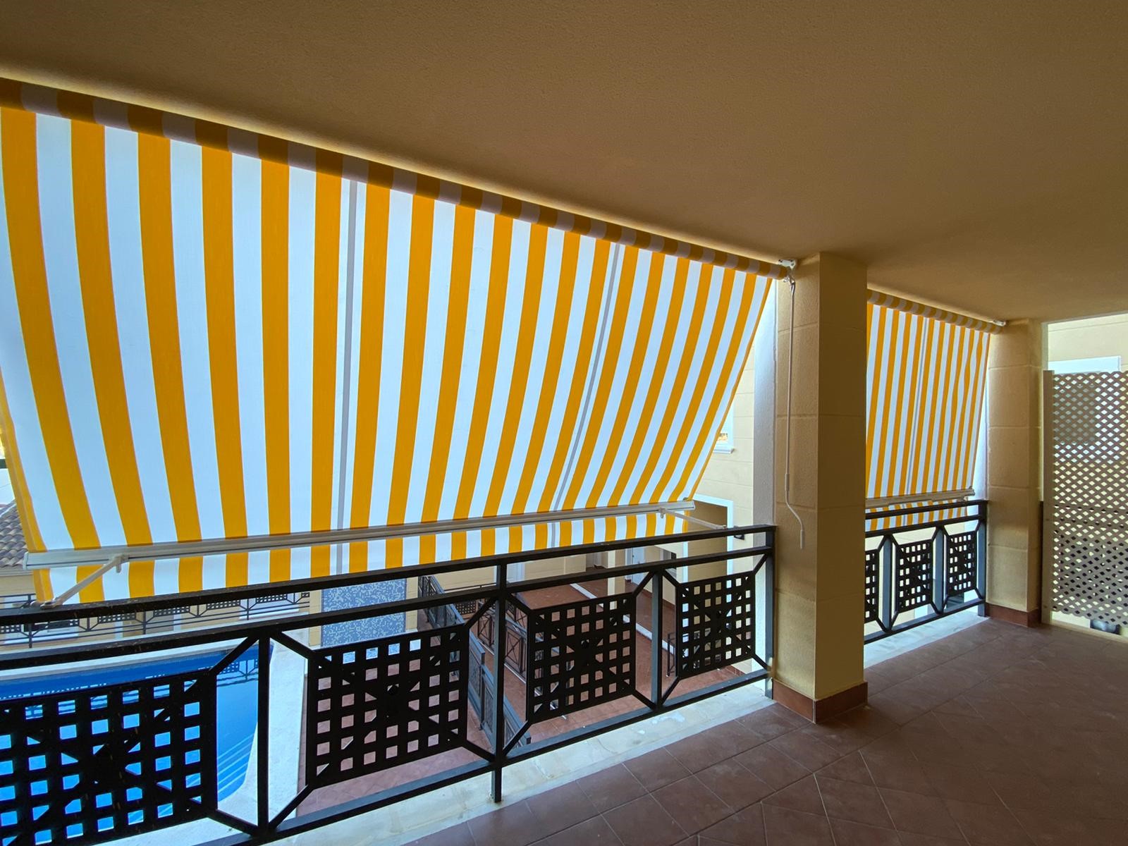 Dentro de la gama de TOLDOS ideales para balcones, Toldos Mediterraneo ofrece los siguientes toldos: Semicofres de brazos extensibles, Toldos de punto Recto ideal para ventanas y el toldos stor de fijación a barandilla.
